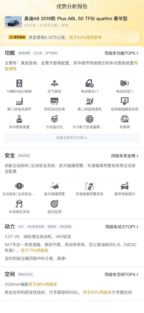 38.8万的奥迪A8L:2019款,豪华座驾,尽享尊贵