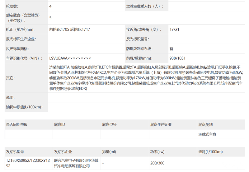 动力方面,新车提供单电机与双电机动力形式,其中单电机最大功率300kW,双电机的前后电机功率分别为200kW和300kW,电池方面则匹配上汽时代与宁德时代提供的三元锂电池组。